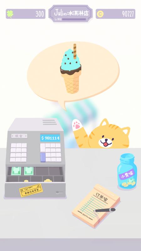 以宠物经济为背景的垂直题材作品。玩家经营一家专营宠物友好型冰淇淋的小店,接待猫狗两类顾客,按其偏好匹配安全可食配方。收入可用于采购食材、翻新店面(含地板、桌椅、墙面装饰等),逐步扩大营业规模,吸引更多毛孩子上门。游戏中严格区分人类与宠物适用原料,体现基础食品安全逻辑。