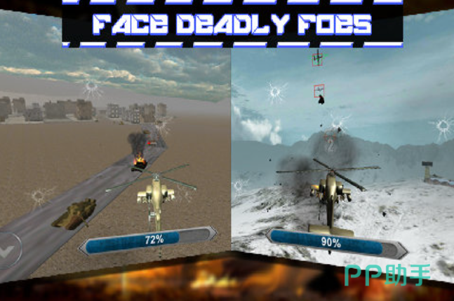 游戏提供超过百种可解锁直升机配置,每台机体具备差异化性能参数,包括载弹量、爬升率、机动性等真实指标。主线关卡达120+,敌人AI行为随进度升级,从基础巡逻编队逐步演变为协同伏击阵型。全触控界面适配不同握持习惯,虚拟摇杆+快捷武器键布局优化操作效率,滑动即可完成滚转、俯冲、跃升等高阶飞行动作。