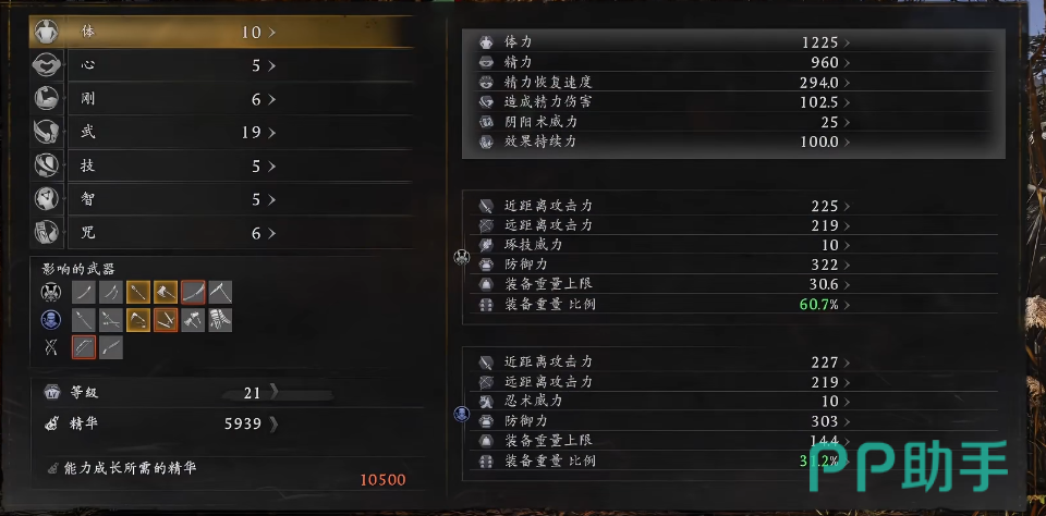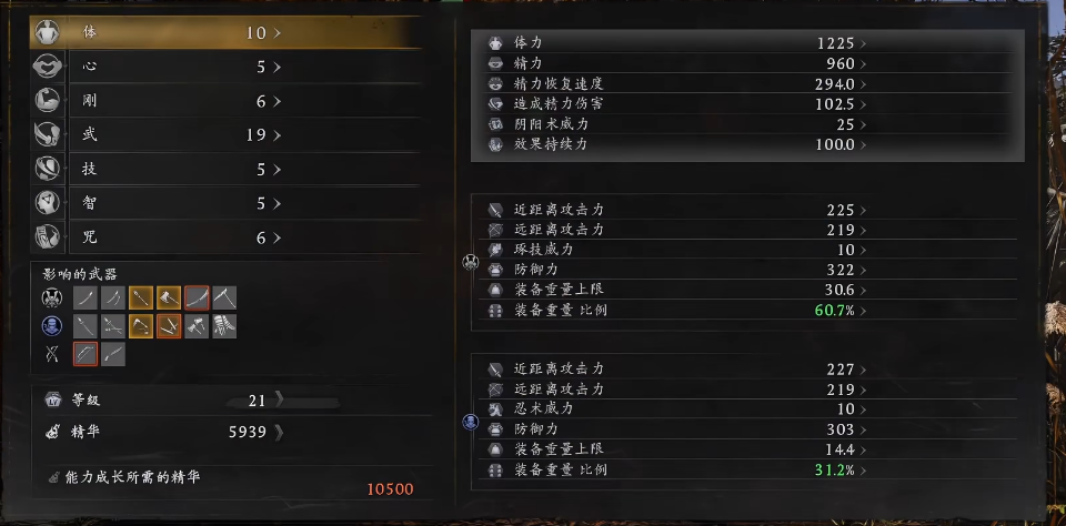 针对忍者路线,推荐优先提升「体」与「心」两项核心属性。「体」直接提升最大生命值,增强容错空间,契合忍者偏重闪避与位移的生存逻辑;「心」则显著提高长枪的基础伤害与部分武技的伤害倍率,是输出构建的关键支点。该组合兼顾续航与爆发,适合以连段压制配合影分身、烟玉等忍术进行节奏控制的打法。