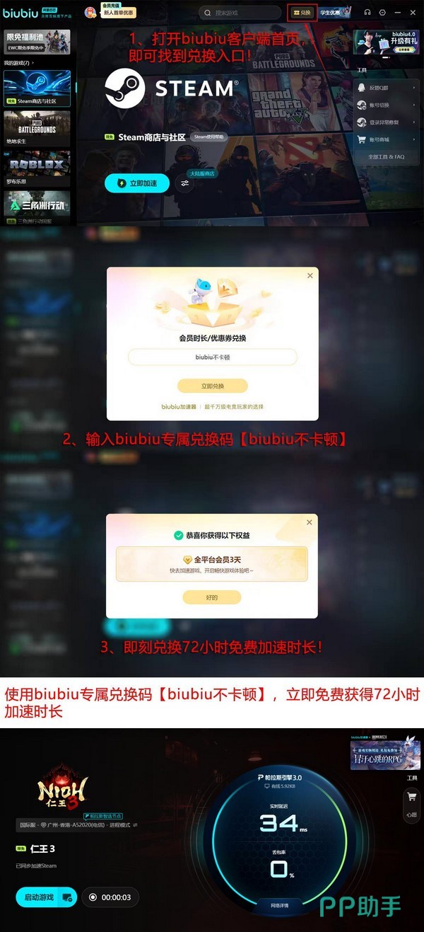 需注意的是,《仁王3》PC版安装包体积达125GB,对网络带宽与下载稳定性要求较高。部分用户反映Steam客户端直连更新速度受限,此时可选用专业网络优化工具辅助下载与在线联机。biubiu加速器由阿里巴巴灵犀互娱旗下研发,与九游、交易猫同属该体系产品。其核心帕拉斯引擎已升级至3.0版本,同时联合《绝地求生》职业选手左梓轩参与实际场景下的连接策略调优。新注册用户可享叠加权益:首日24小时免费体验 + “biubiu不卡顿”活动赠送3天时长,总计96小时可用时长。