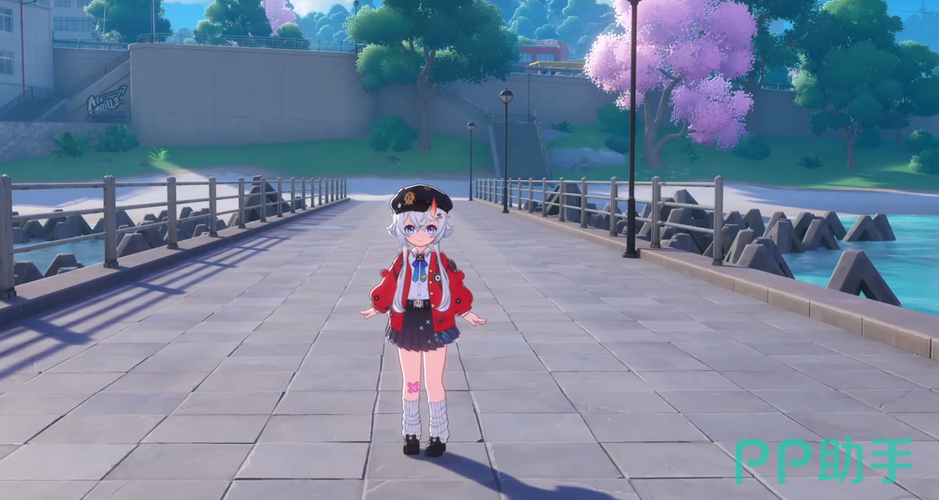 发色呈现黑白分明的视觉张力,气质冷冽中带有一丝萌感。其闪避动作独创性地转化为小恶魔形态,支持高自由度地形跨越,但需持续消耗体力资源,对操作节奏提出更高要求。