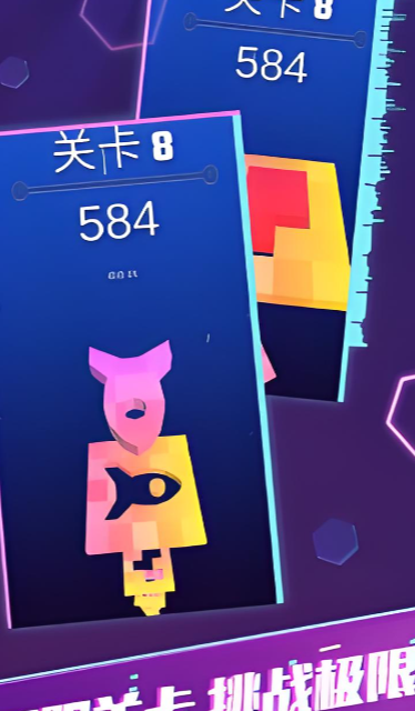 本作将传统拼图转化为实时响应的动态过程:方块自上而下持续下落,玩家须在有限时间内识别轮廓、匹配色块并完成无缝嵌套。随着关卡推进,下落速度阶梯式提升,对视觉追踪、手眼协同及瞬时决策提出更高要求。