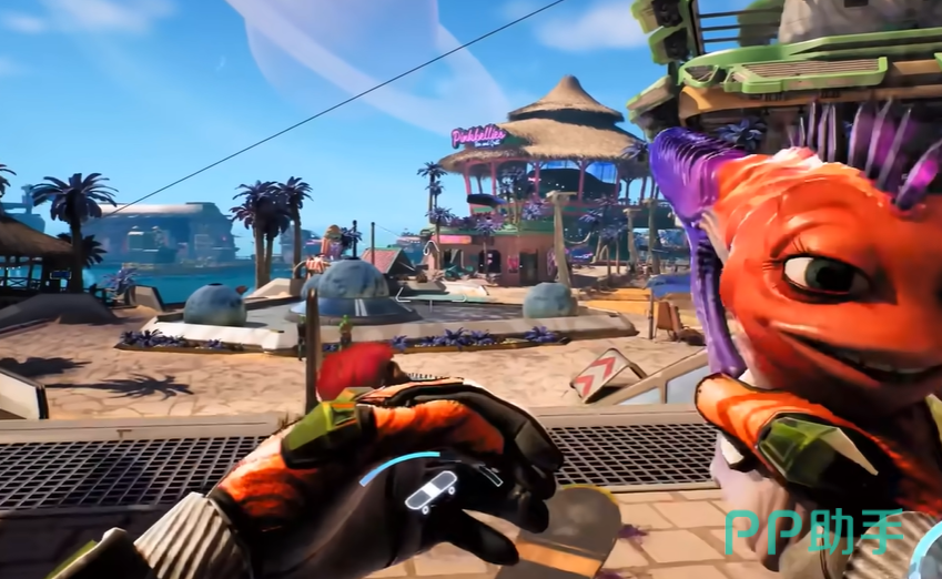 游戏构建了一个横跨多个星系的开放世界框架,玩家将化身来自不同行星生态系统的原生生命体,在风格迥异的外星地貌中自由穿梭。其核心射击机制强调“生物特性转化”,例如鱼形枪械可喷射高压水流实现敌方减速,甲虫型武器则具备弹跳爆破能力。配合滑板载具与可延展锁链系统,移动维度大幅拓展,真正实现立体化战场操控。