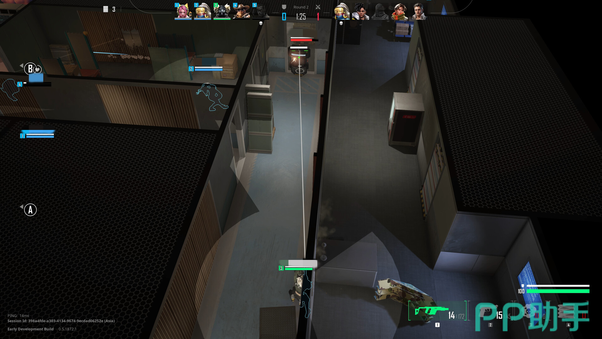 操作层面延续主流射击游戏逻辑:WSAD控制角色位移,空格键实现跳跃与翻越;C键下蹲,V键触发近战交互;数字键切换武器,R键执行换弹动作。瞄准系统中,鼠标右键开启精确瞄准,准星变红即表示锁定目标,左键即可射击;按住Ctrl可压低枪线,有效应对蹲伏状态下的对手。Q/E键用于投掷物轮换,鼠标中键设定角色专属技能。游戏内置视野共享机制,队友视角实时同步至主画面,小地图清晰显示全员位置,叠加语音沟通,协同响应能力显著增强。