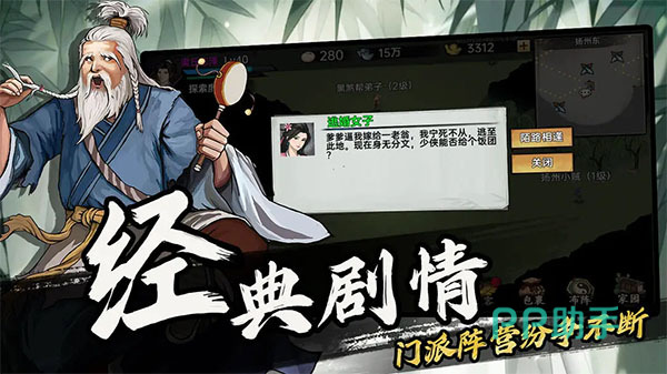 一位初入江湖的少年在各大门派的游历之中,将会学习到很多的功法秘籍和江湖武学。结合了文字剧情的设计,触发了很多随机的事件。加入到武林大会之中将会有机会和高手们切磋武艺,赢得立身于江湖世界的更多装备和资源。少林寺,武当派,华山论剑等最为经典的武侠建筑物,也以最权威的方式呈现在游戏的视野当中。