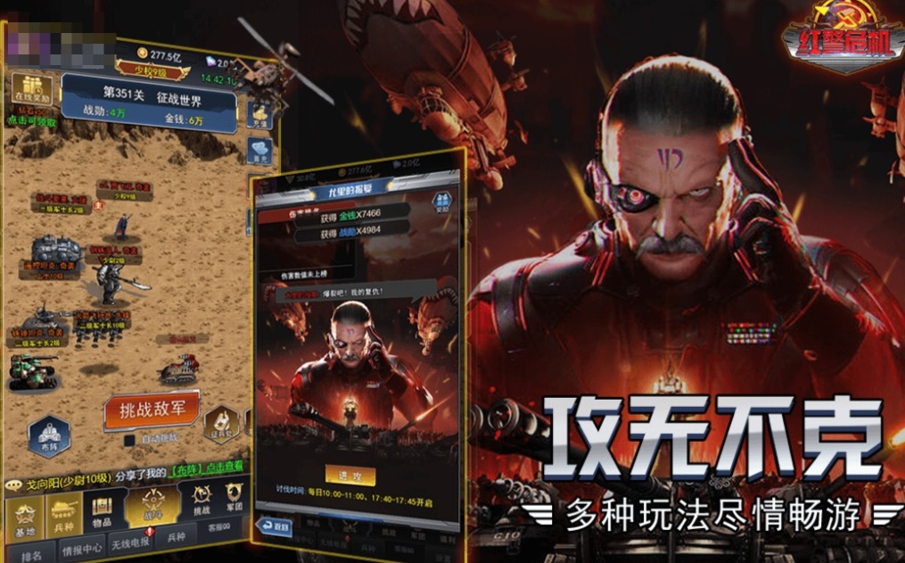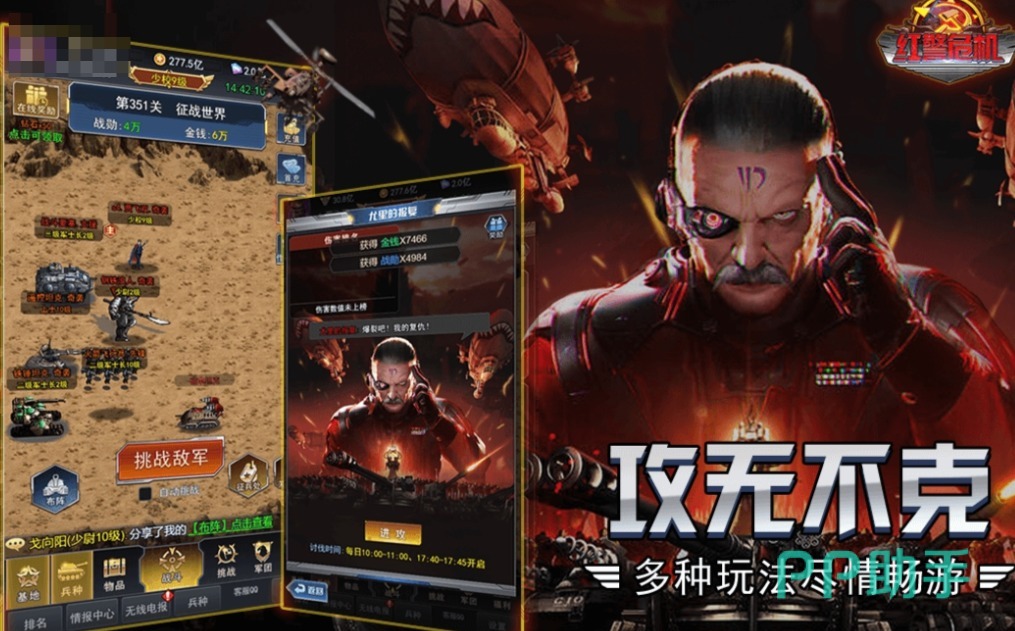 本作也是根据红色警戒为蓝本开发的进食战争类神作,有着超级经典的策略对战玩法和生动好玩的地图设定,与红色警戒一样的点触式互动机制也充满乐趣,多种多样的高策略性模式加持让军事迷沉浸其中,敌人类型也增多需要自定义排兵布阵才可以击败,红色警戒的世界观塑造完善也有很多兵种可以解锁。