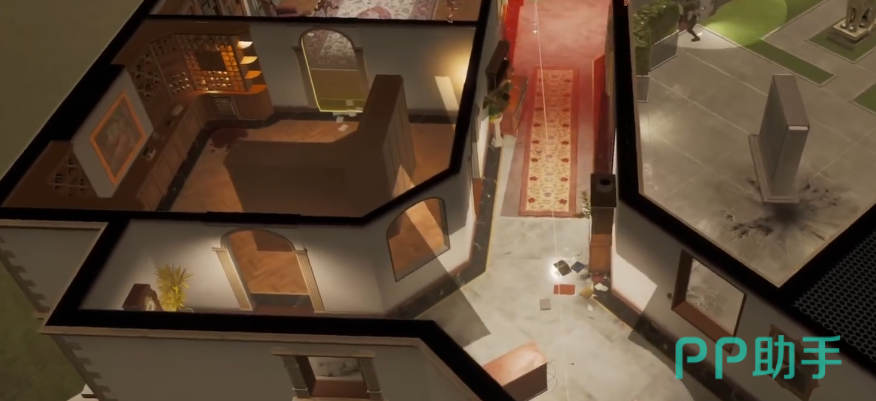 游戏采用标准5v5小队制对抗模式,地图设计强调室内纵深结构——大量隔断墙体、多重门廊与狭长走廊构成高密度掩体环境。区别于传统FPS的全视野设定,本作强制限制单个角色可视范围,形成天然“视觉盲区”。玩家需持续通过语音或标记系统共享敌情、确认方位、协同推进,高度依赖实时沟通与战术分工,显著强化团队协作权重。