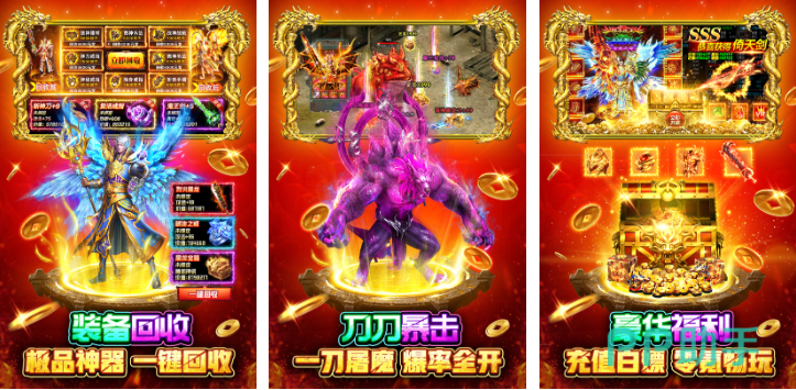 引入半自动战斗AI系统,支持离线挂机与智能目标切换。装备掉落率经实测达同类产品TOP3水平,神兵解锁无付费门槛;战斗特效采用动态光效+物理碰撞双重渲染,神兽召唤为常驻技能,新手期赠送全套过渡装备,大幅降低入门成本。