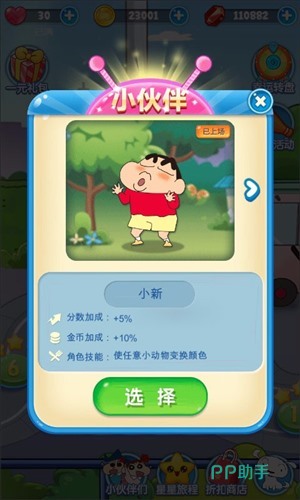 本作将三消玩法与角色养成深度结合。消除界面以小新最爱的零食(如巧克力饼、布丁、棒棒糖)为基本图块,连消触发特殊技能,如“屁屁攻击”清除整行、“动感超人登场”锁定关键区域。角色头像、技能图标、背景音乐均采用官方授权素材,每日登录奖励包含限定表情包与语音包。新增“早餐挑战”副本,限时内完成指定消除目标可获取稀有家具,用于布置专属小屋场景。