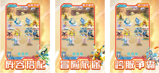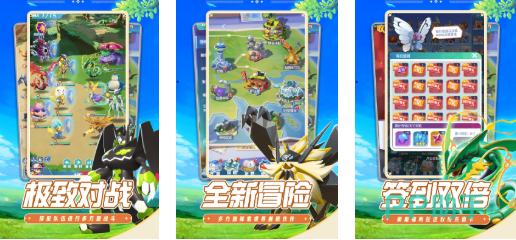 卡牌驱动型放置游戏,单局战斗自动执行,玩家专注资源调配与阵容构筑。图鉴系统覆盖650只宝可梦,含常规形态、地区形态及异色变种。签到活动每日发放随机宝可梦蛋,孵化概率为:普通蛋85%、稀有蛋12%、神兽蛋3%。神兽公园为限时副本,通关后可获得阿尔宙斯碎片,集齐200片可合成完整个体。
