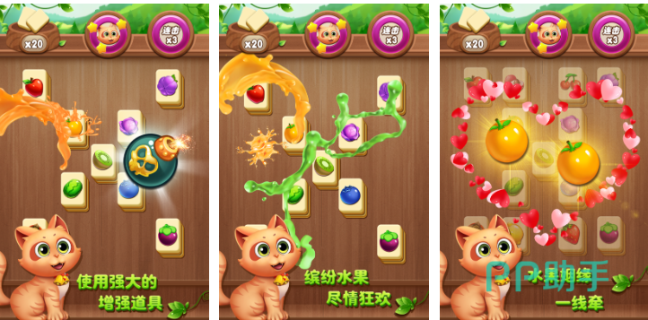 本作是款自由消除小水果的经典竖屏消除神作,消除水果和多种多样的道具会带来不俗的解压感,缤纷多彩的游戏画面也是本作的主要特色,操作简化且道具众多带来的消除过程快感十足,也可以养成小宠物陪伴大家一起尝试完成关卡,酷炫炸裂的连连看消除特效带来的视觉效果也不错,快节奏的连线消除理念也给人不俗的新鲜感,可联机与好友一起比拼消除进度。