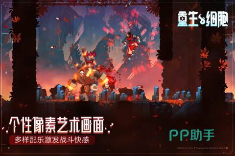 《重生细胞》把细腻的像素美学和高频率的生死轮回玩法定义在一起,给玩家带来一种动感的竞技乐趣。玩家控制着有寄生能力的细胞,在不断变化的地下城堡中寻找出路、探寻自身来历。该游戏的核心玩法主要考验玩家对于武器组合和节奏控制的直觉,在大量敌人围攻的情况下,残血时依靠一次完美的盾反迅速回复生命值并反杀全场的瞬间,给玩家带来心跳加速的对抗快感。