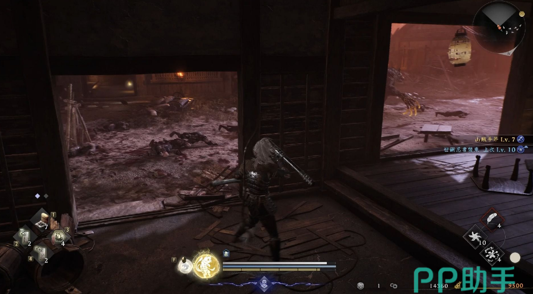 不顺逆用格挡也是一个不错的选择,通过两个鬼火分岔路后,从右侧梯子下行,击败迷雾骸武者,进入旁边房屋的宝箱内,此区域屋顶可通过细木跳跃到达,可能同时获得“忍者遗发”等稀有物品。