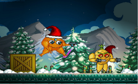 以圣诞老人闯关为题材,采用横向卷轴式关卡结构,融入完整的节日元素,圣诞老人与水果形象相结合,玩家可以来到六大主题场景当中,关卡设置了大量陷阱,障碍等不同的敌人,包括巨型雪怪带来持续挑战,可扮演橙子圣诞老人,在有限的时间内完成使命,这样才能成功通关。