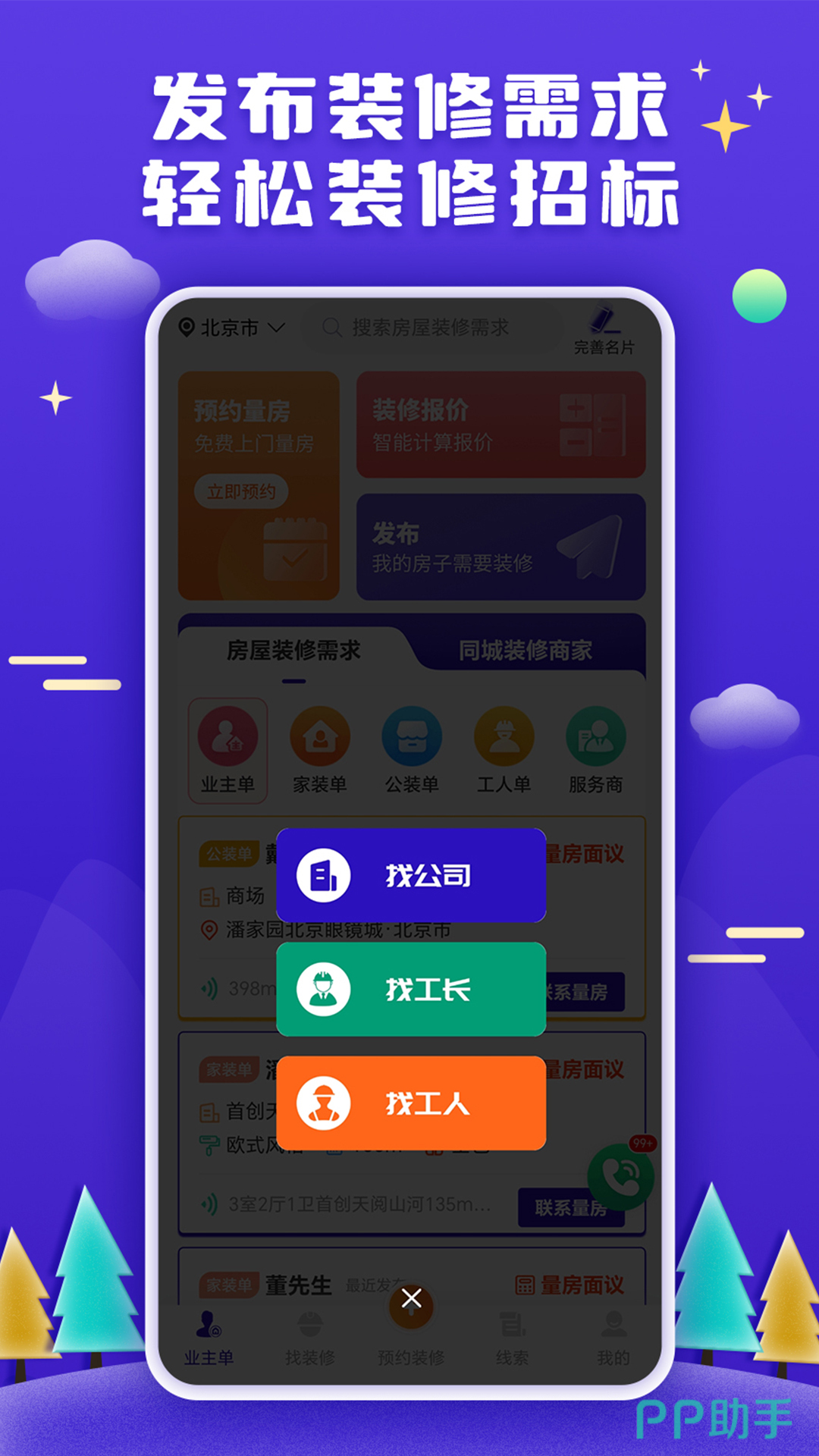 在这里可实现公司接单,装修队找活,也可以是业主寻找质量过硬的装修队。业主可以根据自身选择适合自己的装修人来提供服务,软件发布之后受到了很多业主和装修从业者的青睐,实现了双方快速对接。