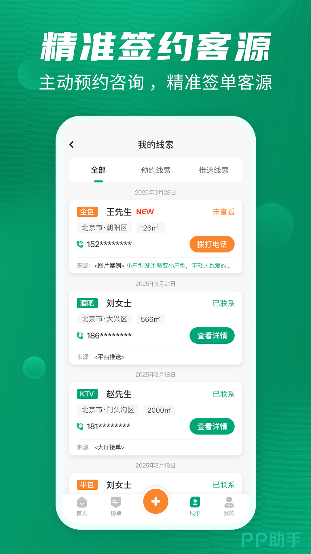汇聚了全国各地的家庭公司等多元化需求,每天更新上百万真实订单,帮助用户随时随地在这里在线抢单。能很轻松拓展客源。平台聚焦于有真实意向的优质业主群体,系统及时推送详细需求,不会错过商机。