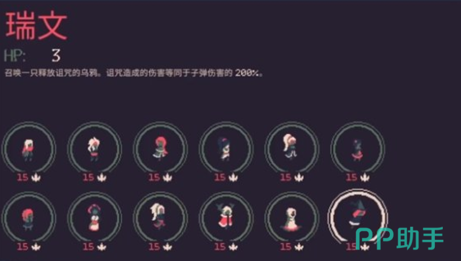 玩家如果想要获得魔法水枪,目的非常的明确,只需要在黑暗森林当中撑够20分钟,并且成功的打败最终守关的boss就能够成功的解锁,不得不说这个情况是非常简单的,但是玩家先要选择合适的角色,在这里推荐高输出或者是群伤害型的角色,瑞文就比较合适,因为它的基础HP是三,核心技能是召唤一只释放诅咒的乌鸦,要说乌鸦的诅咒能够造成等同于子弹伤害20%的额外伤害,所以说他的出现不管是单点输出还是群体清场,所形成的作用都比较大。