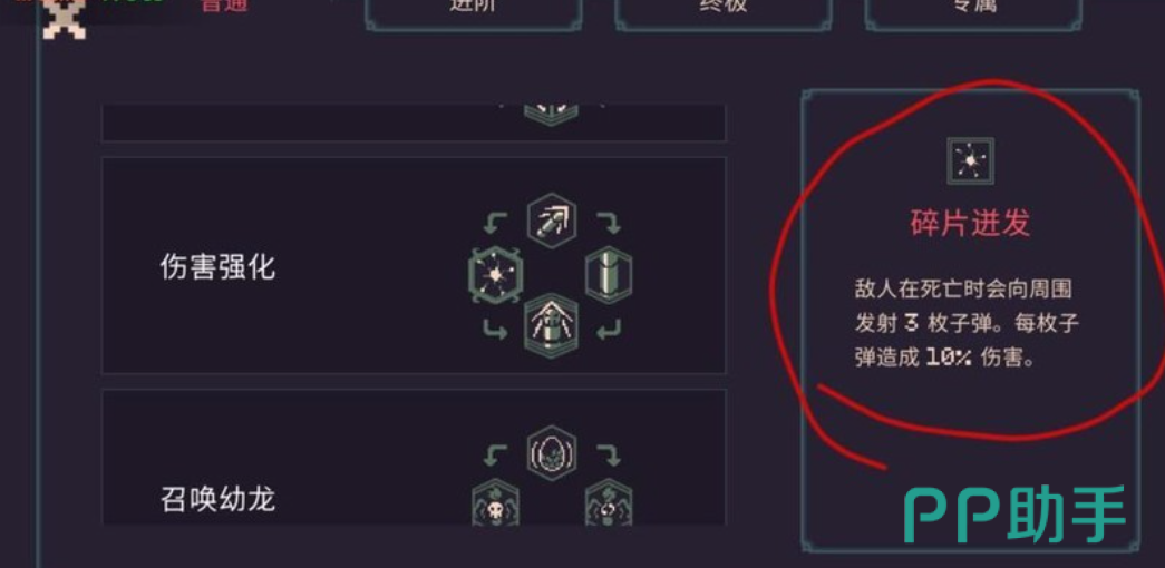 武器方面,“蝙蝠”为最优解。其自带智能追踪、无需瞄准,并支持两次连续碰撞判定,能完美兼容雷电、点燃、冰冻等所有元素特效的叠加与扩散。天赋加点需分阶段规划:前期放弃召唤系天赋,优先投入“怒眸”,确保基础攻击频率与命中稳定性;中期再逐步解锁燃烧、冰冻等元素强化;后期补足“伤害强化”与“碎片”天赋,使敌人死亡瞬间自动迸发子弹,形成可持续的清场循环。