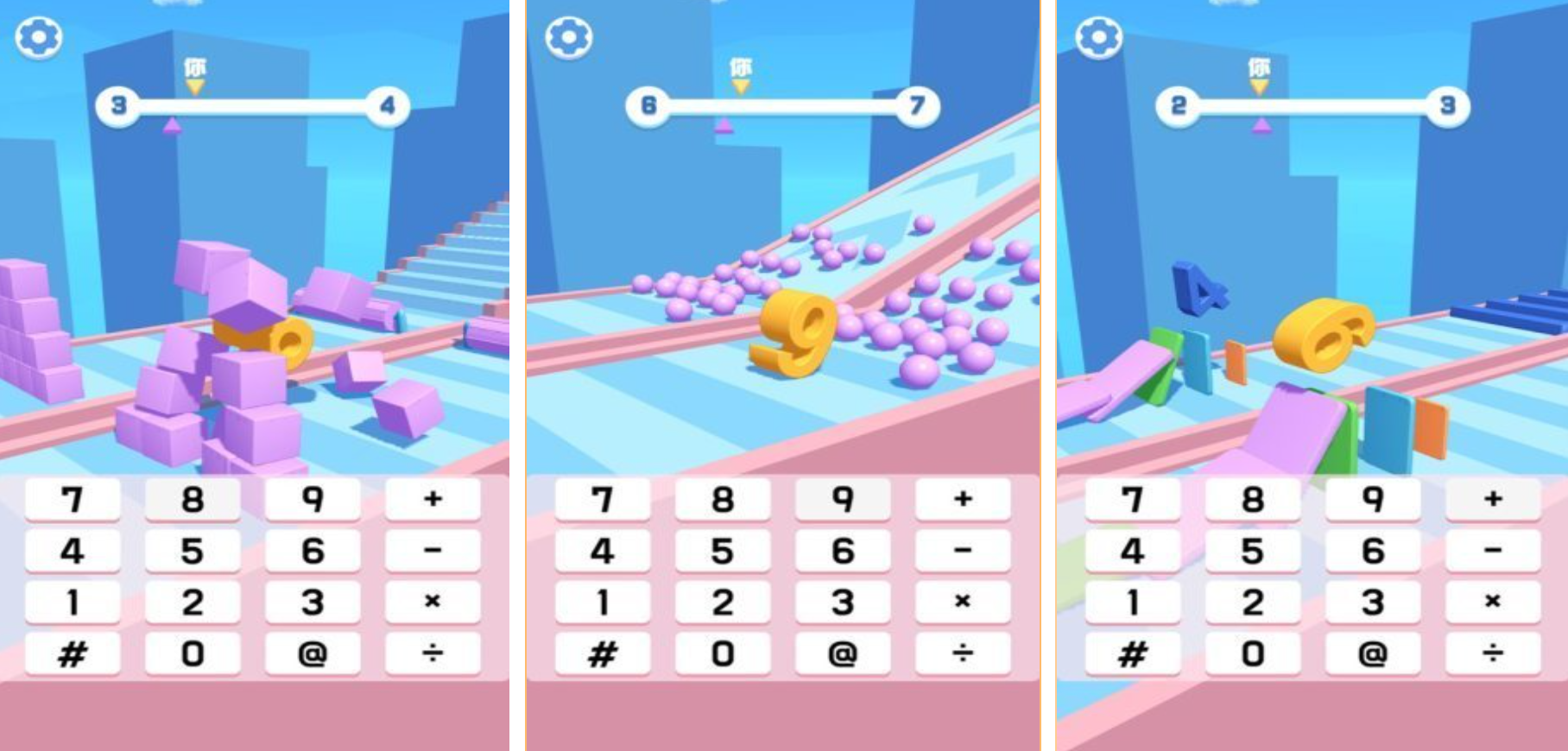 将基础四则运算与节奏化跳跃操作深度融合,玩家操控角色在递进式数字台阶间进行精准落点决策。从个位数起步,逐步过渡至千位级目标值挑战,运算复杂度与时间压力同步提升。高速关卡要求玩家同步调用心算效率与操作精度,在有限帧率窗口内完成策略执行,还原真实数学竞技场景的临场张力。