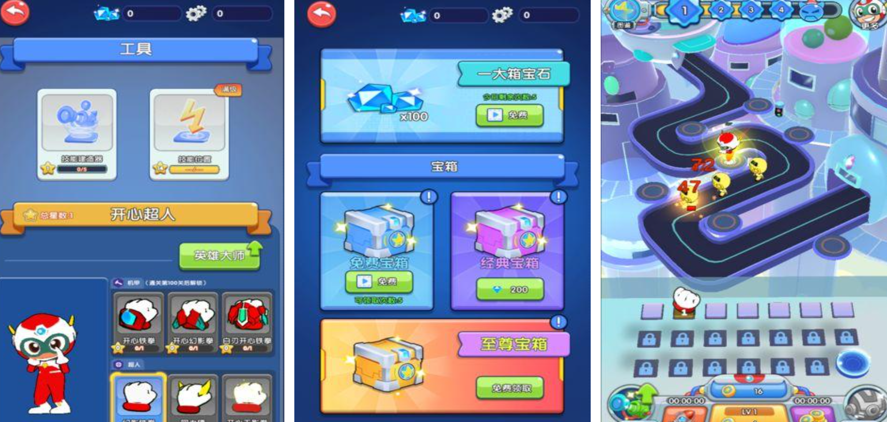本作以塔防+角色技能协同为核心机制,构建出兼具科幻节奏感与战术纵深的星星球战场。玩家需调度开心、甜心、花心等多位超人英雄,在动态变化的城市街道布设防线,依据灰心星球敌军首领的护盾类型实时调整站位与能量输出节奏。全屏合击技可瞬间击破高阶护盾,而每日任务、竞技场胜场等稳定产出路径,支撑着能量核系统的持续强化,形成清晰的成长闭环。
