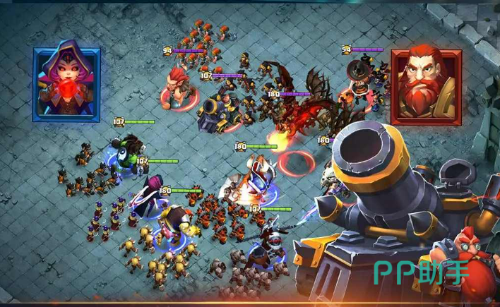 以王权争霸为背景,采用英雄+佣兵双轨协同机制。佣兵战力自动随英雄等级同步成长,取消独立培养线,大幅简化操作流程。城堡建设、跨服竞技、公会团战等模块并重,英雄大招具备战场逆转效果,突出多人协作下的战术配合与全局调度能力训练。