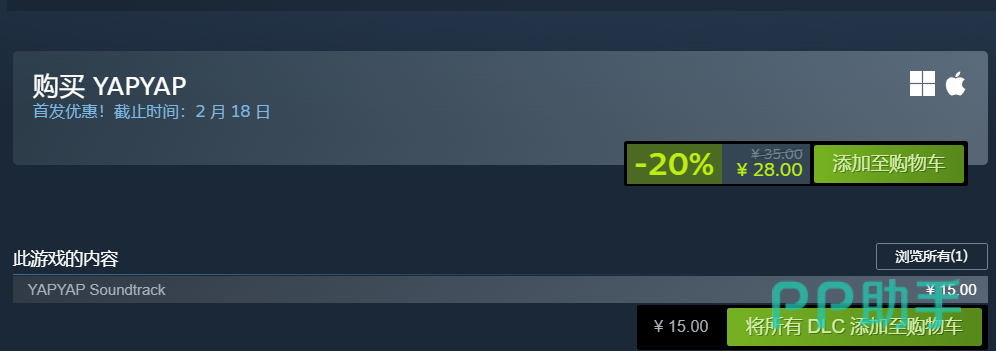 目前Yapyap已在Steam平台正式发售,国区定价为28元。该作由海外开发团队打造,暂未登陆国内应用商店,因此需通过Steam客户端购买数字版后启动游玩。玩家也可关注其他区域商店页面,对比价格差异——部分区服可能存在限时折扣;选购时请注意确认语言支持情况,只要标注含简体中文,下载后在设置中切换即可流畅体验。