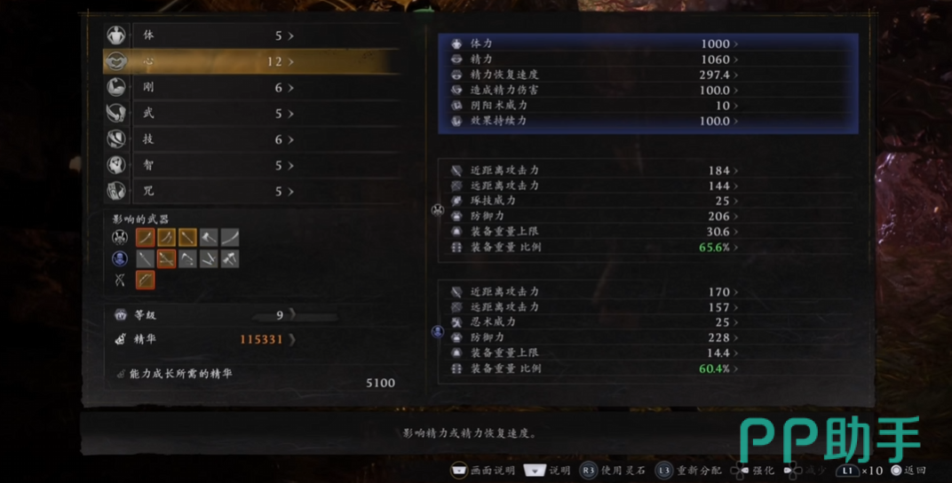 角色成长依赖两大核心机制:甘露积累与魂核配置。甘露是升级唯一资源,可通过击败敌人稳定获取,也可用灵石在商店按固定比例兑换。当甘露达阈值后,前往神社即可提升力量、敏捷、耐力等七项基础属性之一,对应武器熟练度同步增长;部分装备被动技能需特定属性达标方可激活。