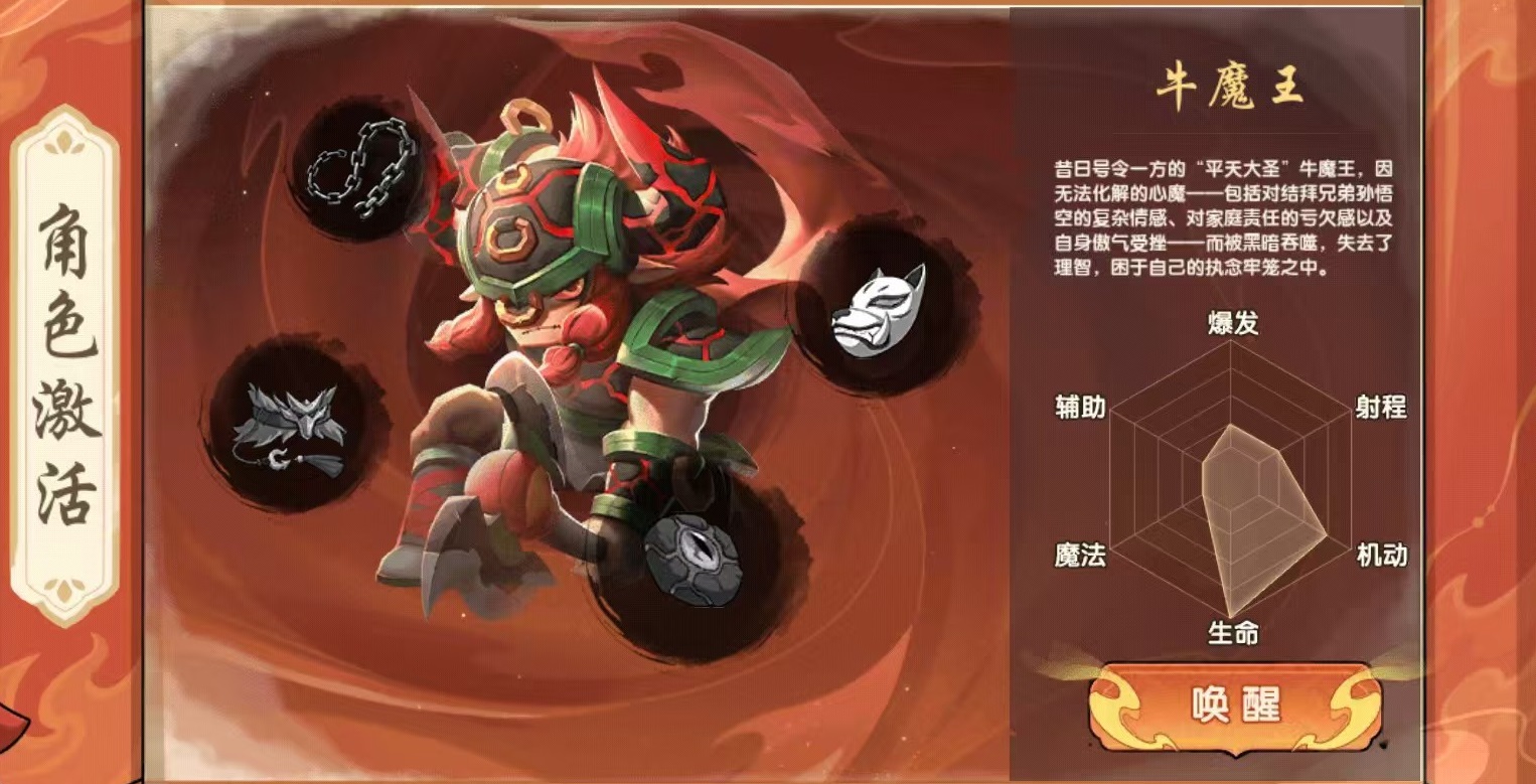 牛魔王承担前排抗压与强控职能,拥有全角色中最高的物理承伤能力与最稳定的硬控链路。魔化提升基础属性并延长霸体时间,摄魂魔爪附带吸血与减速效果,螺旋横扫构成大范围击退+眩晕组合,蛮牛冲撞则用于突进开团或反打追击。被动技能推荐疯狂蛮力,进一步放大防御转化与反击伤害,契合习惯正面接战、注重阵型保护与容错空间的玩家需求。