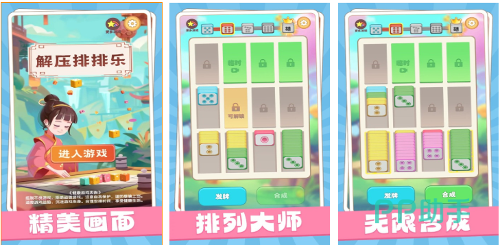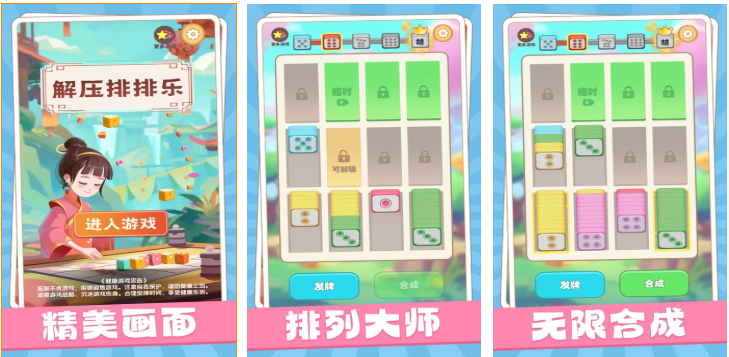 这是款给强迫症患者们开发的经典解谜解压小游戏,存在着精美画面和独特的排列主题玩法,无限合成的游戏理念提供的沉浸感也不错,每一关带来的解压休闲体验都是以很独特的,音效塑造和画面呈现都显得休闲感拉满,尽情排列各种道具进行收纳的玩法也能给人带来无比解压的感觉。