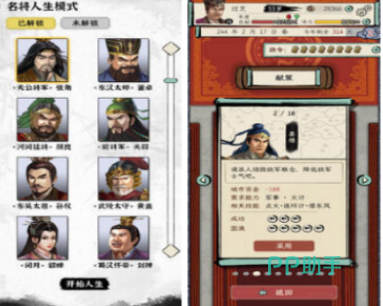 作为三国开放型人生模拟游戏,大家在游戏里能选不同的人生方向,不管是做一方诸侯,上阵杀敌的武将,还是出谋划策的谋士,或是逍遥自在的游侠都可以。游戏里的各方势力关系会动态变化,一场战争的结果,会受兵力多少,天气情况还有所用计策的影响。和游戏里的人物互动时,好感度和对所属阵营的忠诚都很重要。