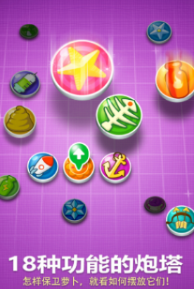 这个简单的单机塔防游戏,游戏里的萝卜形象和各种小怪物,都做的可爱,有着专属的原创形象标识。进入游戏后,大家要面对各样的兔子怪物,依靠自己的思路和应对方法阻挡它们的进攻,只要能守护好萝卜不被破坏,就能完成关卡的挑战。这款游戏的初代版本虽然已经上线很久了,但一直都有不少玩家喜欢,游戏里还设计了超多游戏地图。