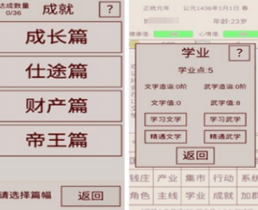 依靠文字推进的历史模拟游戏,游戏的时间线严格跟着明代的纪年走,从洪武年间到崇祯年间,十六个朝代的更迭都有体现。大家在游戏里能有不同的选择,可以参加科举考试入朝做官,也可以做买卖积累财富,还能选择归隐山林不问世事,每个选择都会影响到家族的声望,家里的资产多少,还有身边的人脉关系。