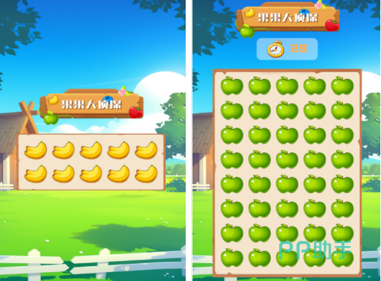 本作以水果王国为背景,核心玩法为经典找不同。每个关卡呈现高度相似的水果阵列(例如数十个苹果并排排列),差异点隐藏于细节之中——包括果蒂朝向、表皮反光、叶脉纹理或色阶深浅等。玩家需在倒计时结束前快速定位全部差异项,训练观察力与瞬时反应能力。