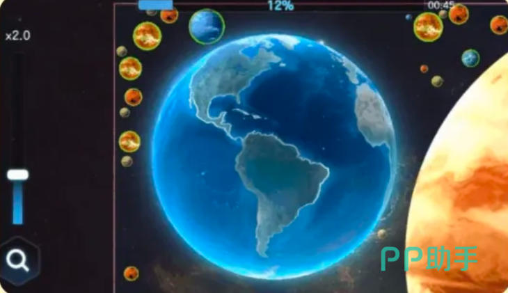 喷射速度可以自定义,随后都可以调节,当大家靠近体积小于自己的星球时,强大的引力会将其拉扯帮助轻松吞噬,自身也将得到成长,但要注意比自己要大的星球,判断好体积,保持安全距离非常关键。
