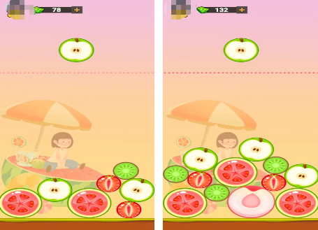 延续经典合成玩法框架,初始阶段屏幕上方持续下落多种水果元素,涵盖小草莓、中型橙子、大型西瓜等不同体积与等级单位。玩家通过滑动操作精准落位,使同等级水果相邻接触后自动融合,逐级升阶为稀有形态,并同步累积积分。关卡无体力限制,适合长期休闲养成。