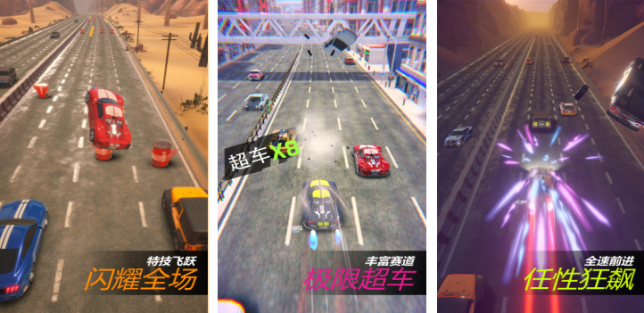 主打电影级镜头语言与三重视角切换(追尾视角/驾驶舱视角/上帝俯视视角),支持慢动作回放与碰撞轨迹分析功能。物理引擎精确模拟车辆重心转移、悬架压缩行程及轮胎滑移角,高速过弯时车身侧倾幅度随速度线性变化。环境音效采用多点采样录制,引擎轰鸣、胎噪、风噪分频处理,搭配杜比全景声优化,强化听觉沉浸感。
