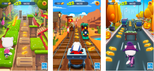 以2D横版视角呈现的高速跑酷作品,主角团涵盖汤姆猫、安吉拉、汉克狗等经典IP形象。关卡中嵌入变形冲刺、悬浮滑行、时间减缓等特色机制,配合随机掉落的护盾、加速、金币倍率等增益道具,形成策略性资源管理维度。背景采用分层视差滚动技术,搭配柔和光影与动态天气效果,强化奔跑过程中的空间纵深感与临场节奏感。