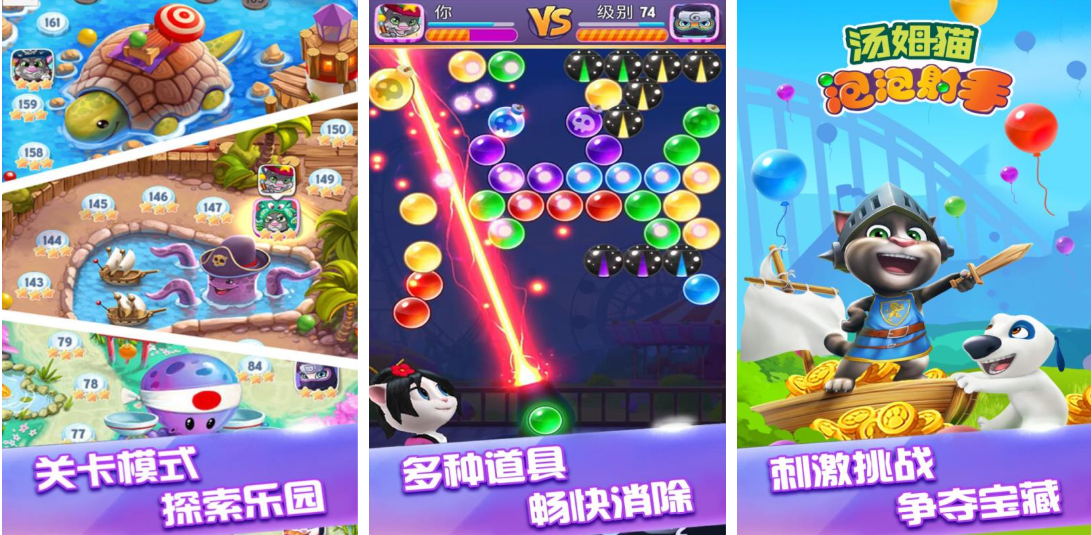 基于经典泡泡龙玩法重构的IP衍生作,依托汤姆猫世界观构建多层级关卡体系。每关均设独特目标与地形限制,配合炸弹、彩虹球、冰冻等策略型道具,增强解谜深度;消除反馈节奏紧凑,连击判定灵敏,角色移动与发射路径支持微调,提升操作精度。整体风格延续IP一贯的活泼调性,视觉反馈饱满且富有韵律感。