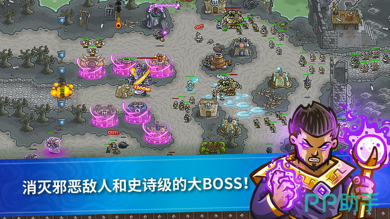 塔防品类标杆之作,上线逾十年仍稳居玩家心中的策略类天花板。游戏构建了箭塔、炮塔、法师塔、兵营四大基础防御体系,每类塔拥有差异化攻防逻辑与克制关系,配合英雄技能系统,可衍生出高度自由的战术组合。进阶玩家常挑战“无氪流”“单塔通关”等极限玩法,进一步延展策略深度。手绘风格界面干净明快,地图场景简洁却不失细节,交互式菜单设计增强代入感。音效表现极具记忆点,例如特斯拉炮塔标志性的“Toasty!”语音已成为系列文化符号。