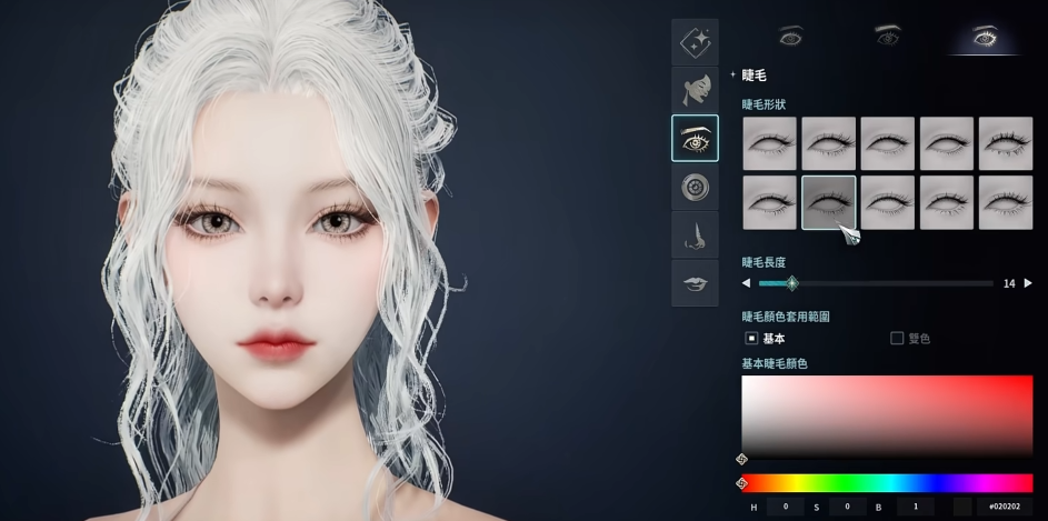 眼部是御姐神韵的关键。睫毛样式选择倒数第五档——浓密型,长度设定为14,避免厚重压迫感;卷翘角度调整至100,强化灵动水光效果。注意上睫毛浓度需明显高于下睫毛,确保明暗层次分明,防止视觉脏浊。