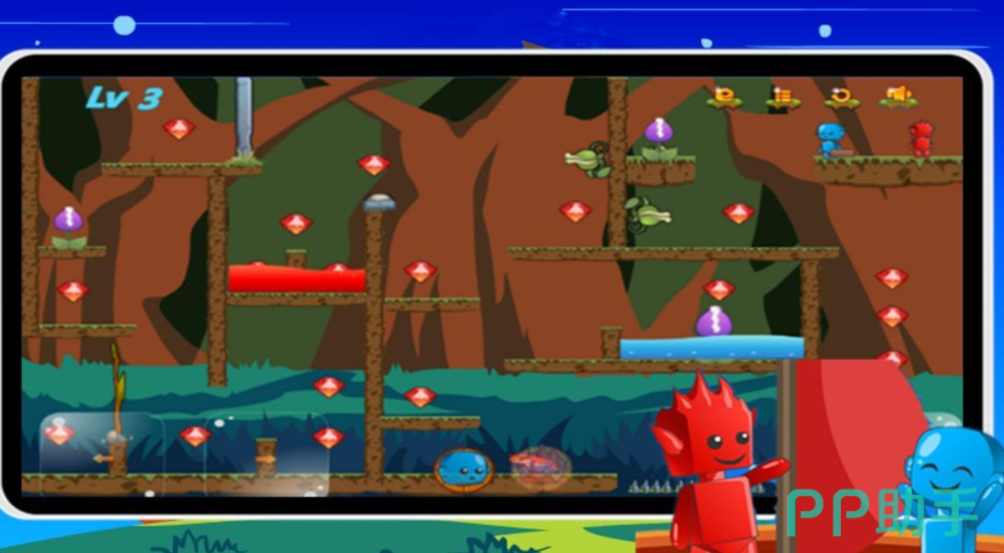 主打高速协作体验,《冰火人冲刺》在传统解谜基础上加入竞速元素。小火人与小冰人需交替利用地形优势推进,如火焰融化冰障、寒气冻结熔岩等机制被高频调用。宝石与钥匙作为基础资源自由拾取,关卡进程动态生成提示,降低挫败感;操作逻辑经过深度优化,滑动+点击组合流畅自然,兼顾休闲性与硬核向解谜需求。