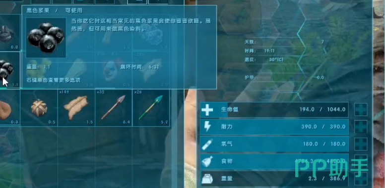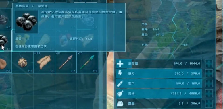 镰刀龙是草食性的,需要喂紫色浆果和黑色浆果。紫色浆果可以增加驯服进度,黑色浆果能大幅度恢复它的眩晕值。镰刀龙的眩晕值掉得比较快,所以要时不时看一下,快掉下来了就赶紧喂几把黑色浆果。