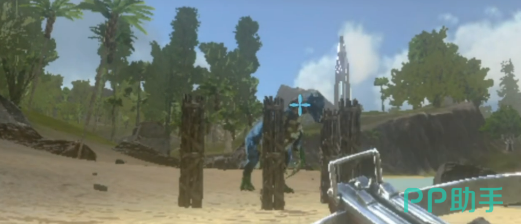 首先要准备十根木质柱子,这个材料很容易获得,随便砍点树就够了。然后就去找一只镰刀龙,找到以后别急着上去打,先用木头柱子在地上搭一个U型的屏障。这个屏障一定要搭成两层高的,因为镰刀龙的智商比较高,如果只搭一层或者搭成其他形状,它会绕开屏障直接过来攻击你。