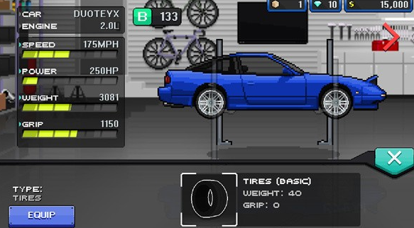 以像素美术风格呈现硬核改装逻辑,所有性能零件通过赛事结算免费获取。改装界面集成实时数据看板,直观显示马力增幅、扭矩平台区间、转向灵敏度变化值及轮胎抓地力系数变动。玩家需依据不同赛道特性(如长直道、发卡弯、湿滑路面)制定专属方案,使每台赛车在物理引擎层面具备独特操控指纹。