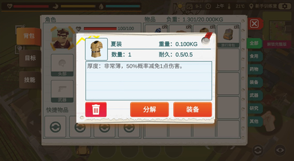 这一款游戏即便是零氪金也可以体验。在刚刚进入游戏之后,玩家就需要做好基础的准备工作,获得防具还有武器。防具的厚度还有耐久都会影响到防御的效果,例如夏天的装备可以减免伤害。初期有合适的装备,一定要及时的穿戴,可以有效抵御怪物的侵袭。物资的获取是末日生存的关键,游戏中有许多获取的渠道,新手可以先从简单的方式,如果缺乏食物就可以去钓鱼,操作比较稳定,而且还会有更好的收获。还可以来到野外去收集蘑菇,土豆以及玉米等食材。