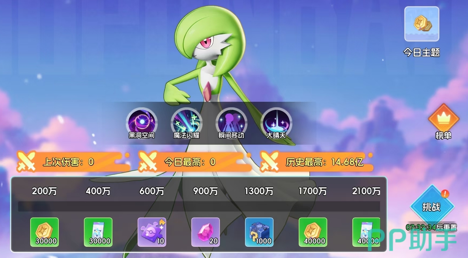 要想解锁每日挑战,玩家们需要先通过探索关卡5-32,然后在岛屿里完成冒险奇谭(简称飞艇)的建造,才能在飞艇里参与此玩法。它的规则很简单,玩家们需要挑战当天的宝可梦boss,并根据所打出的伤害来获取奖励。其中,最低一档的奖励需要玩家打出200万伤害,封顶伤害为5000兆,但很难到达。游戏会在该玩法里设置7个会在固定时间开启的主题,并按顺序进行轮换,不同主题下玩家所面对的宝可梦boss也不一样,各宝可梦boss所携带的奖励也不同。挑战时间为当天0点至晚上23点30分,结束后会进入结算环节,并为玩家发放当天的挑战奖励。