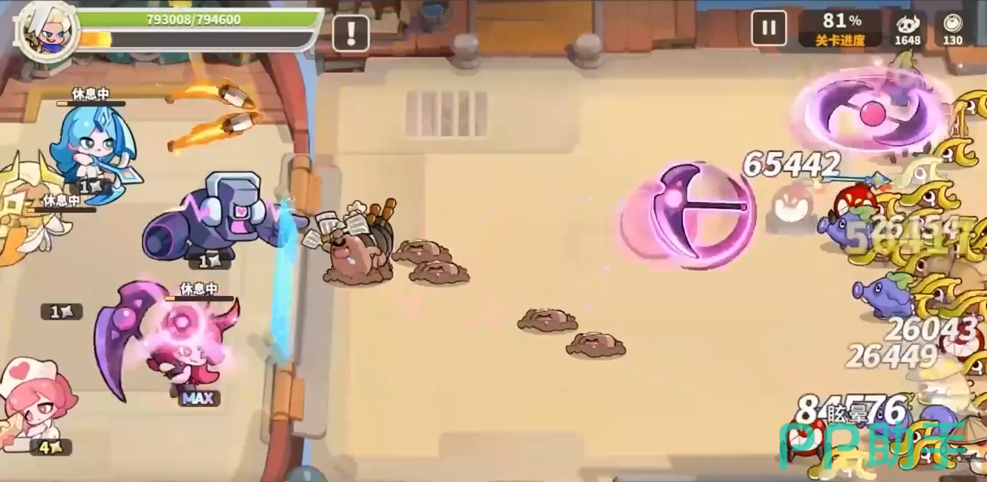 第二个则是我们耳熟的“甜心护士”,作为游戏中的最强奶妈,甜心护士无论是在治疗手段还是后期的高压局面下,都是整个队伍的次要核心。其本身不俗的治疗量在中期体系尚未成型的时候,可以说是起到了非常关键的作用,无论是其“在场时,为队友提供20%额外最大生命值”的常驻效果,还是“每局仅限一次,若队友倒下,则立刻回复其100%血量”的超强复活技能,都让她在奶妈这个大职业下有着绝对的话语权,可以说没有甜心奶妈,很多关卡都要难上许多了。