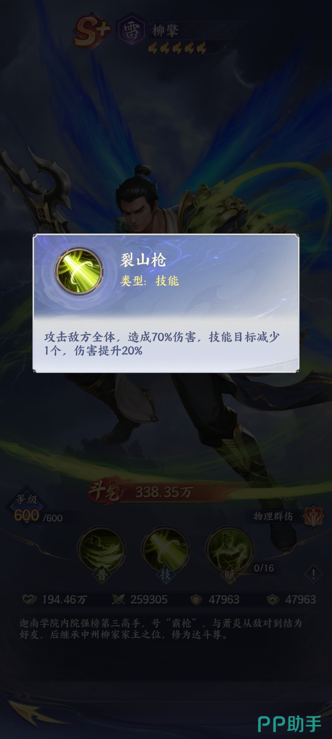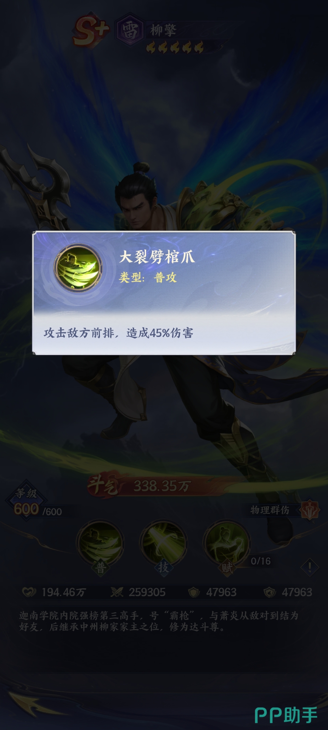 柳擎身上穿的是蓝金色的服饰,搭配着绿色的斗笠,背后还有蓝色的斗气羽翼,他其实整体的实力比较强悍,在战斗的过程当中,玩家其实也需要充分的去了解它的特征,比如它充满了毁灭性的力量,一旦施展普通攻击技能之后,它能够有效地攻击敌人的前排,在这样的情况下,能够让敌人形成较高的物理伤害。虽然他的普通攻击技能看上去比较简单,但是却非常有力量。