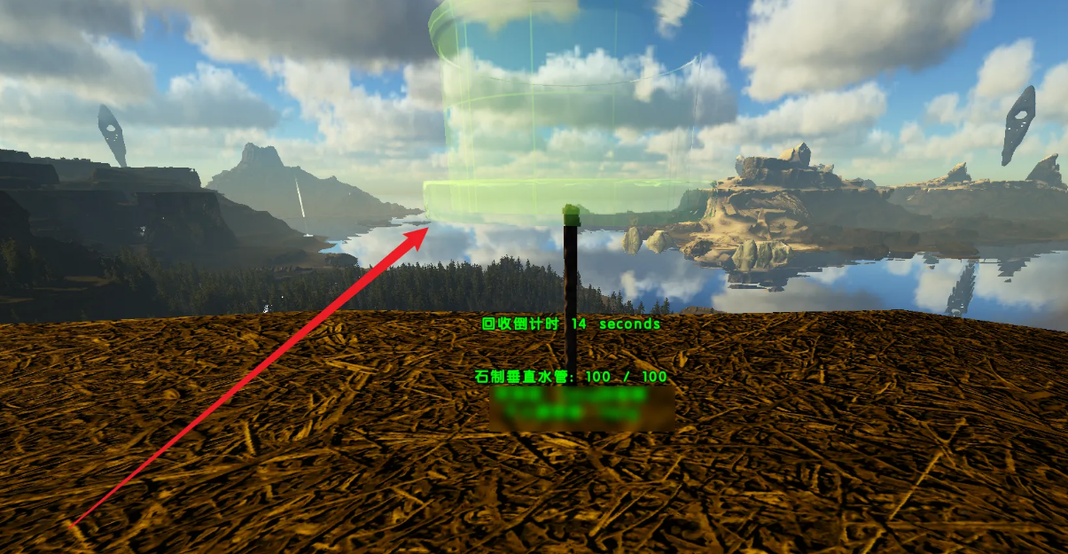 做好垂直水管之后,就该找地方放了。选位置的时候要考虑清楚,最好是选在基地里比较方便的地方,后面用起来会省事很多。把垂直水管竖起来固定在地上,这时候会发现水管已经立住了。有了这根水管,水罐就有地方可以放了。