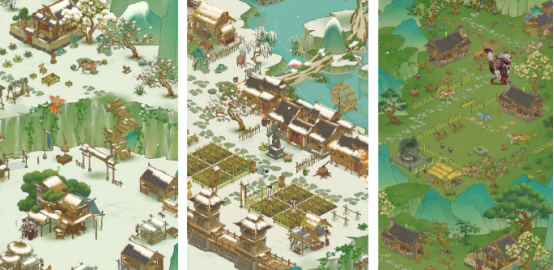 采用水墨晕染与低饱和度配色,还原古风田园生活图景。玩家携兄妹重返故里小院,在阡陌之间开垦耕种、引水灌溉、收获四季作物;拜访NPC村民触发日常对话,参与节气活动,逐步修复老屋、扩建庭院。无体力限制、无强制在线时长,节奏松弛,强调可持续的生活仪式感。